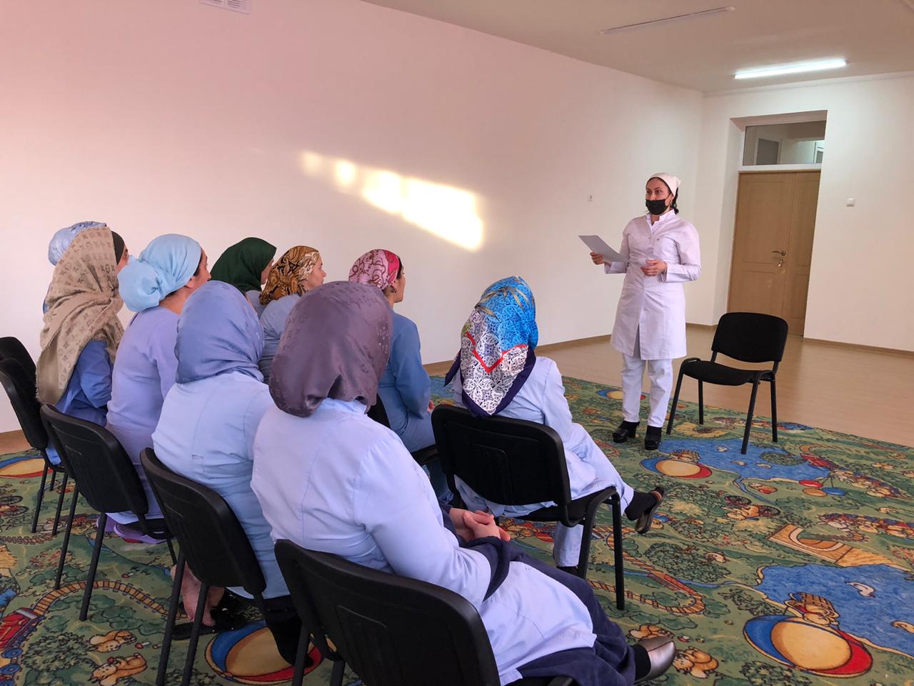 07.02.2020г. Медицинская сестра Садыкова Хеда провела беседу с сотрудниками МБДОУ ДЕТСКИЙ САД " Седарчий" ст. Петропавловская на тему: Короновирусная инфекция и её профилактика.